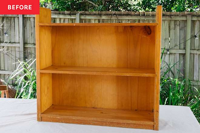 A Brown Thrift Shop Shelf Becomes a Gorgeous Gingham Statement Piece